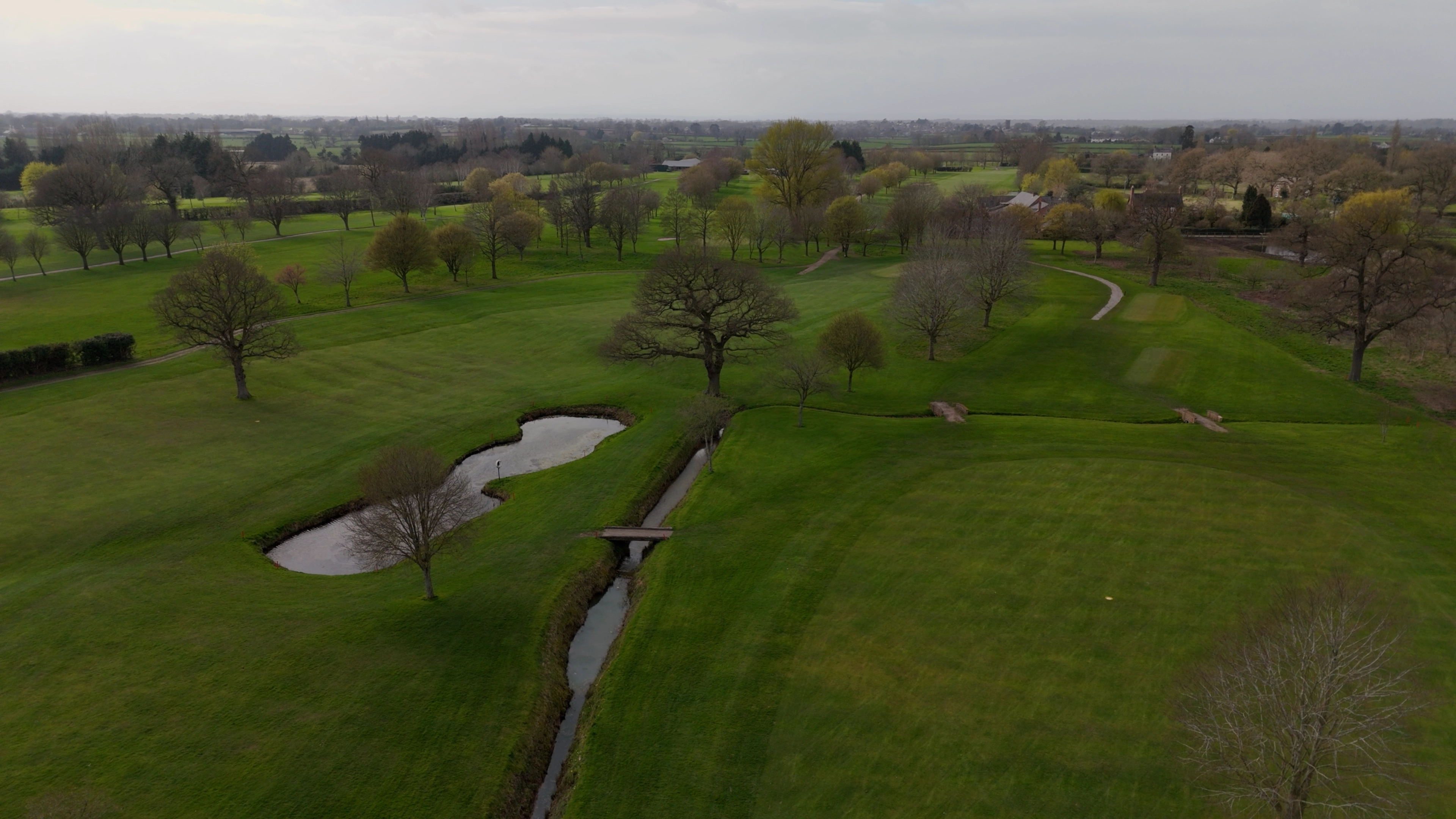 Pryors Hayes is a course on the rise. One hundred and twenty acres of Cheshire parkland undergoing serious investment under new ownership. They needed content that matched the ambition. We captured the full layout from the air, the tight tree-lined fairways, the water hazards, and the landscape stretching out toward Chester. Drone video, ground-level photography, and a finished showreel to put their course on the map.